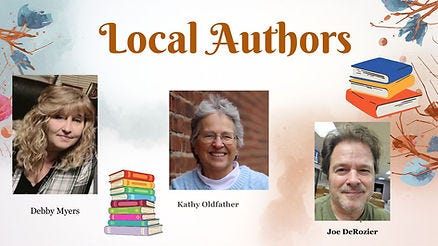 Next week, I intend to talk about some local or locally connected authors. You’ll know the ones I know ... hey, Debby Myers, Joe DeRozier, Kathy Oldfather. If you know others, give me their names. I’ll talk about them, too.